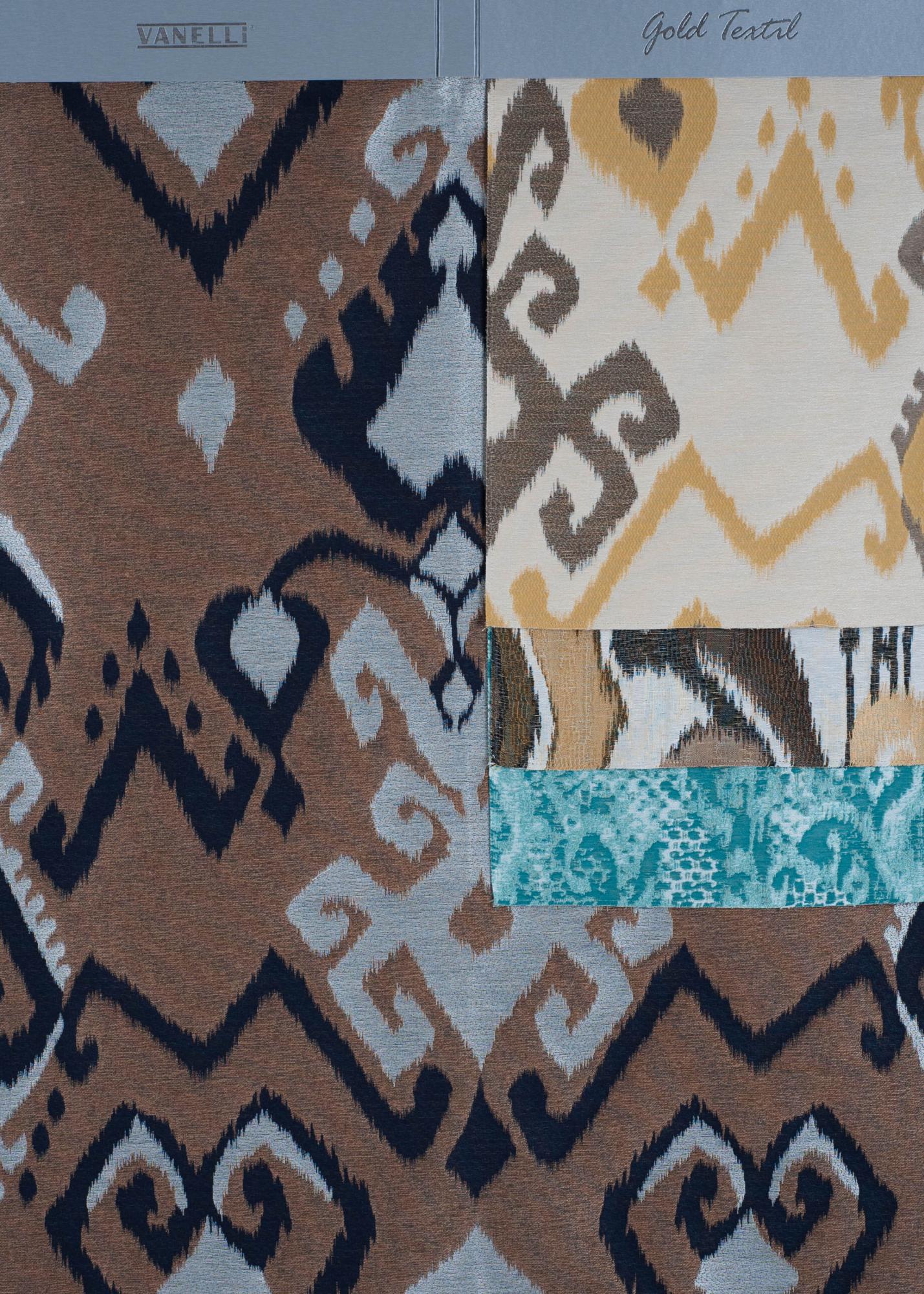 Портьерная ткань шириной 145 см. Состав: 60% вис., 25% хлопок, 15% п/э. Раппорт: гор 0,72 см, верт 0,90 см