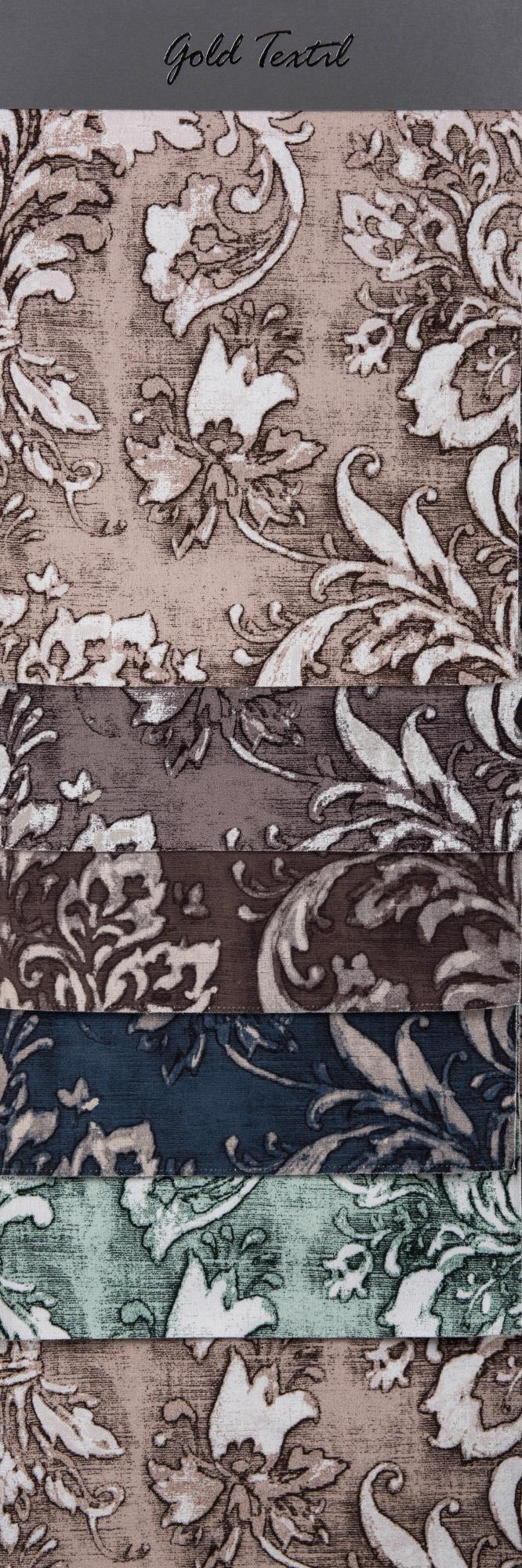 Портьерная ткань шириной 145 см. Состав:100% полиэстер. Раппорт: верт. 63см гор. 70 см. Представлена в 5 цветах.